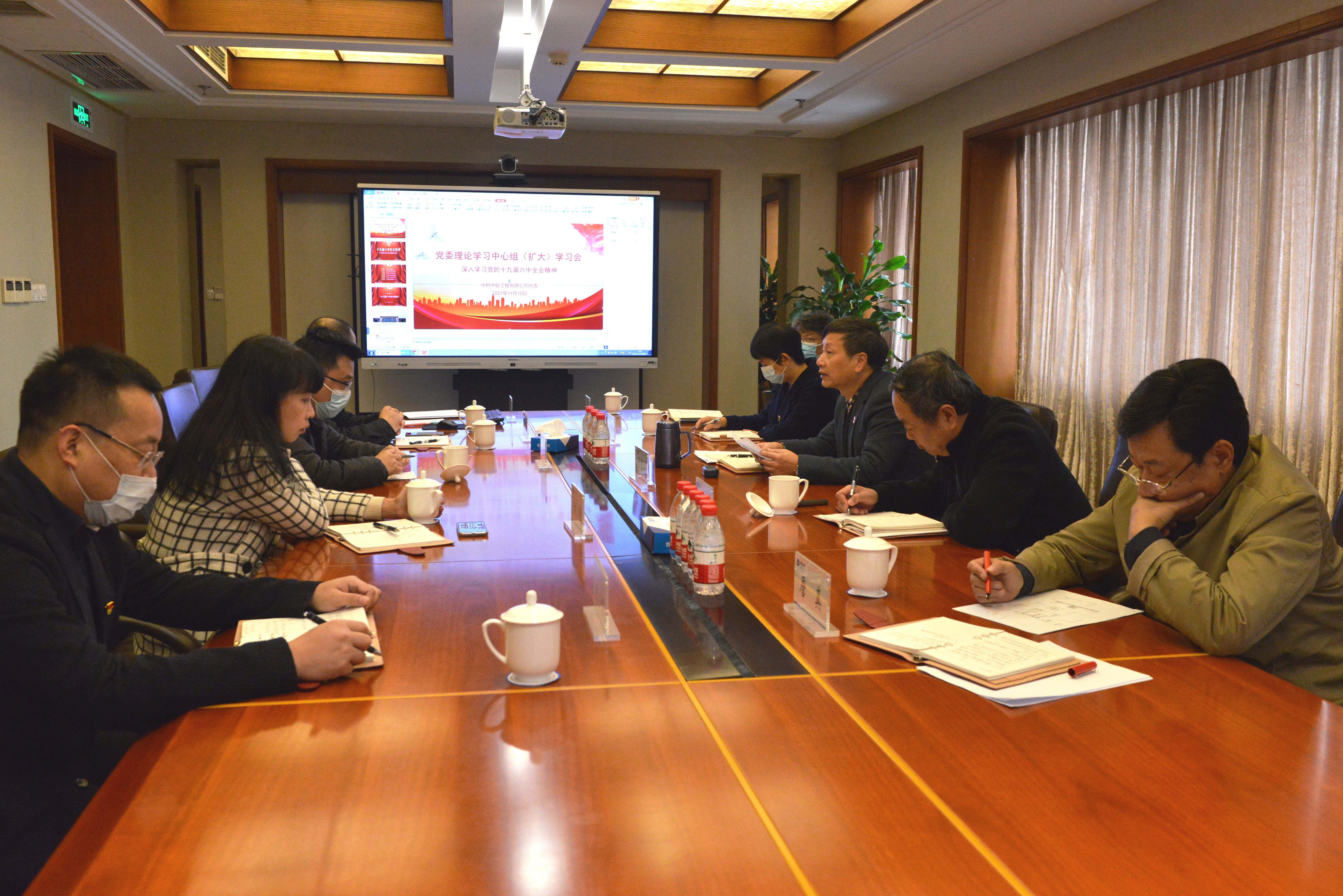 11月15日,中機中聯黨委理論學習中心組集中學習黨的十九屆六中全會精神。公司黨委書記、董事長李儒冠主持會議并作中心發言,公司黨委副書記、紀委書記饒思源同志作領學。公司