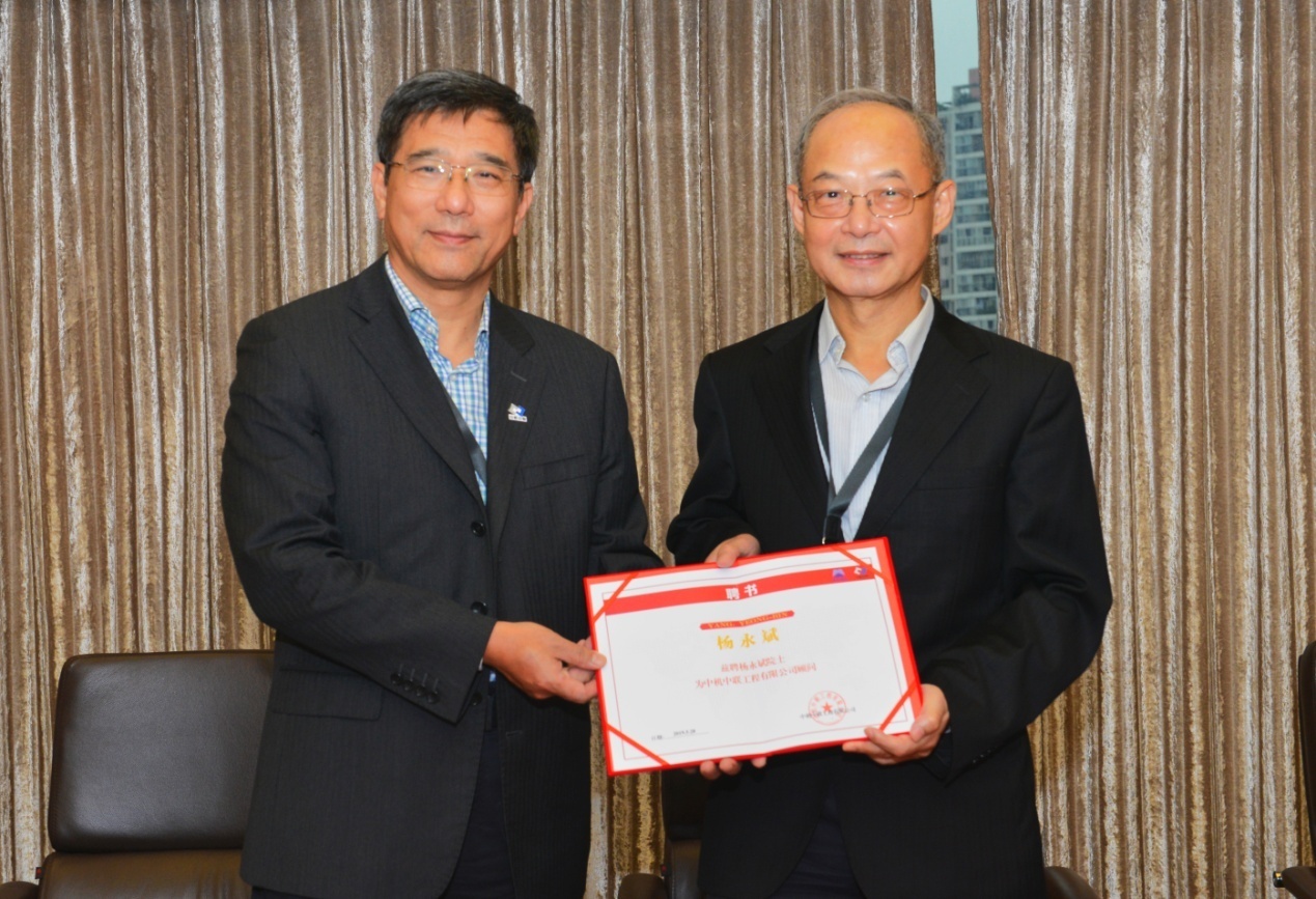 5月28日,中機中聯工程有限公司首位特聘院士——中國工程院楊永斌院士的續聘簽約儀式在A座29樓會議室舉行。中國聯合工程有限公司副總經理韓偉,中機中聯工程有限公司黨委書記兼董事長李儒冠參加會議。會議由公司副總經理宗挺主持。
